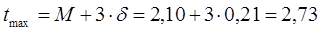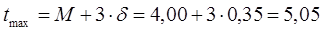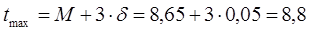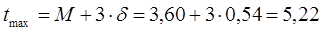 При построении кривой плотности вероятности (кривой распределения) отмечаем на оси абцисс значения средней величины M. Вправо и влево от M откладываем по 3δ получаем на оси абцисс значения tmin и tmax.Разделим интервал от tmin до tmax на 8 равных частей, получаем на оси абцисс отметки, соответствующие отклонениям αн от среднего значения M в обе стороны. Против M(отклонение αн=0) откладывает отрезок , равный в принятом масштабе ординат значению плотности распределения f(l)= f(