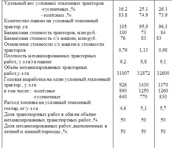 По данным таблицы 1.6 хозяйство для своих масштабов снабжено техникой необходимых марок в достаточном количестве.