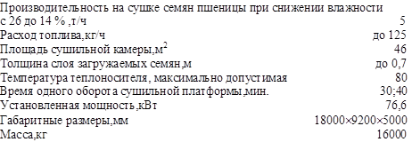 Производительность на сушке семян пшеницы при снижении влажности с 20 до 14%, т/ч |