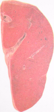 Некротический фокус в печени теленка при сальмонеллезе
