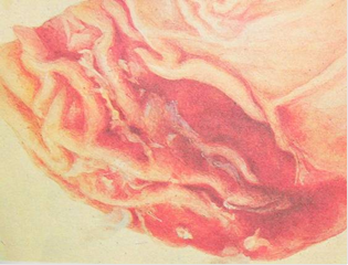 Рисунок: катарально-гемморагическое воспаление желудка поросенка при сальмонеллезе