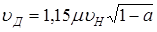 - скорость истечения через отверстия в конце воздухораспределителя,