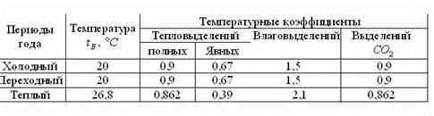 Таблица 3. Выделение теплоты, влаги и углекислого газа.