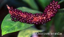 Достигая полного развития, они у некоторых видов сильно вытягиваются и закрывают рыльце. Иногда же тычинки после опыления быстро втягиваются к основанию околоцветника, становятся незаметными, и цветок снова выглядит женским. У большинства антуриумов, как и у многих других ароидных, цветки развиваются на початке от основания соцветия к его верхушке, но у некоторых первыми появляются цветки в центре початка, еще реже последовательность их появления установить не удается. Продолжительность цветения антуриумов, по наблюдениям американского исследователя Т. В. Кроата (1980), сильно колеблется у разных видов и может длиться от нескольких часов до нескольких недель. Сильно варьирует у разных видов и запах цветков, от едва ощутимого, до очень сильного, приятного или зловонного, в зависимости от «запросов опылителя». Мух привлекают отвратительный запах и темная окраска початка, покрывала и листьев. Пчелы предпочитают сладкий, парфюмерный запах и светлые тона окраски. Т. В. Кроат считает, что иногда пчелы, по аналогии с их поведением на орхидных, «собирают запах», а не пыльцу или нектар и используют запах растения для сексуального привлечения. «Надушившись», самцы с большим успехом привлекают самок. У цветков разных видов антуриумов запахи различаются по составу химических веществ и появляются в разное время суток. Цветки одних видов пахнут только утром, других - среди дня. Появление же неприятного запаха непосредственно не зависит от суточной периодичности и обычно связано с развитием тычинок. Среди опылителей цветков антуриумов -насекомые из разных и довольно далеких таксономических групп - пчелы, мухи, жуки и осы. Плод антуриумов - сочная, иногда яркоокрашенная ягода, разносимая обычно животными, преимущественно птицами. По мере созревания ягода как бы выдавливается из околоцветника и повисает на двух нитевидных полосках, закреплённых на частях околоцветника. В этом более открытом положении на початке часть ягод какое-то время удерживается и становится более доступной для птиц.