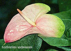 Род антуриум, включающий около 500 видов, представлен преимущественно травянистыми растениями со сравнительно толстыми, нередко укороченными стеблями и междоузлиями, peже стебли удлинённые, иногда ползающие или лазающие и очень редко древовидные. Листья разнообразной формы и рассечения (от цельных до сложно рассечённых). Черешки всегда с геникулумом. Покрывало соцветия чаще зеленое, но нередко и ярко окрашенное, подобно околоцветнику, в красный, фиолетовый, розовый цвета. Цветки антуриумов сериями спиралей тесно расположены на цилиндрическом початке и похожи на ромбы и квадраты. Цветки всегда обоеполые, обычно с 4-членным околоцветником и 4 тычинками; гинецей синкарпный; рыльце чаще дисковидное; завязь 2-гнездная, с 1-2 семязачатками в каждом гнезде. Плоды-сочные мясистые ягоды; семена плосковыпуклые, с мясистым эндоспермом.