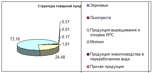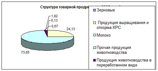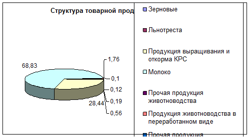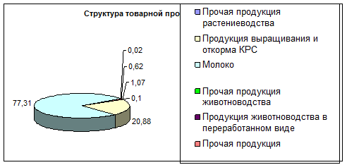 На диаграммах хорошо видно, что за анализируемые годы молоко имеет наибольший удельный вес, следующей по значимости идее продукция выращивания и откорма КРС, что ещё раз доказывает, что хозяйство имеет молочно-мясную специализацию. Остальные виды продукции имеют незначительный удельный вес.