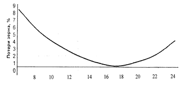 Величина потерь зерна зависит не только от продолжительности сроков уборки, но и от продолжительности рабочего дня и времени суток (рис.1).
