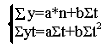 Приведенную систему нормальных уравнений можно упростить, если срединный уровень ряда условно принять за начальный уровень. В этом случае Σt=0, а система уравнений примет следующий вид: