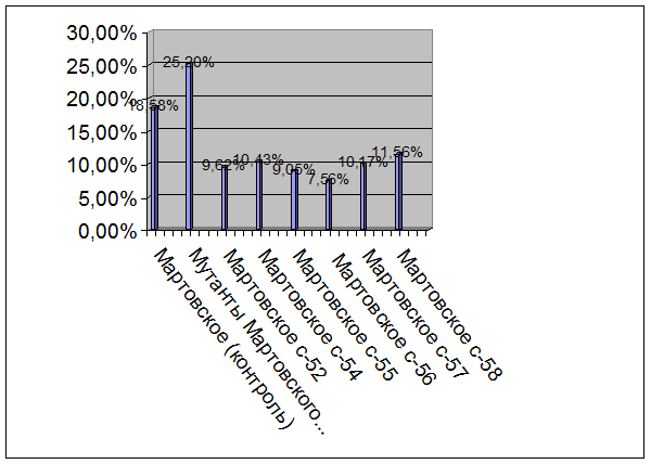 Рис. 14 Сравнение сорта Мартовское с его мутантными и гибридными формами.