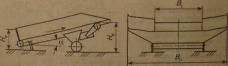 Скорость полотна бункера vп должна быть регулируемой, чтобы сравнительно быстро отводить продукцию от места ее выгрузки в бункер при разгрузке транспортных средств и изменять подачу продукта из бункера на другие машины (линии) в широких пределах. При ширине полотна 1.2 м она плавно изменяется в пределах до 0,5 м/с.