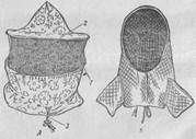 Лицевая сетка служит для защиты головы и шеи пчеловода от ужалений. Делают сетку из хлопчатобумажной ткани светлых тонов. В переднюю ее часть вшивают кусок черного тюля. Спереди в верхний край вставляют резинку, - позволяющую при необходимости откидывать тюлевую часть и открывать лицо, не снимая сетки. Лучше пропускать воздух будет лицевая сетка, сшитая целиком из тюля. Чтобы ткань сетки не прилегала к лицу, верх сетки выполняется в виде широкополой шляпы, в край которой вставляют проволочный круг; такой же круг продевают в нижнюю часть сетки.