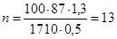 F = 87 × 5 × 0,253 ¸ 3,5 = 955л/м2