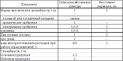 Таблица 1.2 Планируемая урожайность, нормы внесения семян и удобрений, расстояние перевозок: