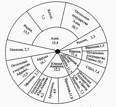 Процентное соотношение поголовья по континентам и ведущим странам мира представлено на рисунке 1