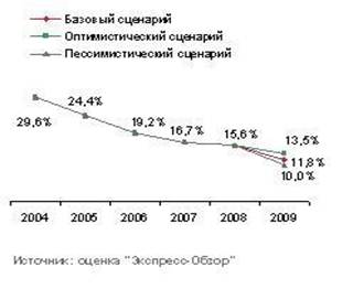 Проанализировав факторы, влияющие на развитие рынка, а также мнения экспертов отрасли, аналитики «Экспресс-Обзор» построили три возможных сценария развития рынка: оптимистический, пессимистический и ожидаемый (График 2).