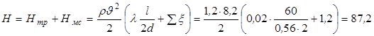 Напор, создаваемый вентилятором должен быть больше суммы потерь давления на трение и в местных сопротивлениях: