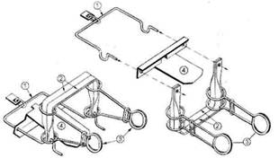 Рис. 12. Устройство и последовательность сборки бесшарнирного капкана: 1 - рамка; 2 - дуги; 3 - пружина; 4 - насторожка