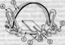 1 - станина; 2 - крестовина; 3 - дуги; 4 -подпружиненная рамка; 5 - рычаг насторожки с тарелочкой; 6 - вертлуг