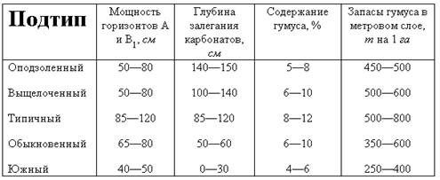 По мощности гумусового слоя чернозем подразделяется на: [3]