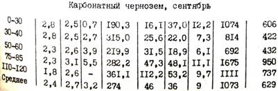 Ещё в 1906 году С.А.Захаров показал, что важней характеристикой чернозёмов служит состав почвенного раствора. Карбонатность почв контролируется наличием в них растворенных бикарбонатов кальция и магния. Данные опытов приведены в таблице 6. В растворе почвы количество кремния и алюминия ничтожно. Железа в верхнем слое очень мало, но с глубиной их количество увеличивается. Это связано с тем, что карбонат блокируют железо, что является одной из причин хлороза растений, проявляющегося на почвах с высоким содержанием СаСО3. Почвенный раствор изучали на контрольных делянках без удобрений, поэтому высокое содержание в Чк азота в виде нитратов следует объяснять более энергичным ходом нитрификации в этих почвах по сравнению, например, с карбонатами обыкновенными.
