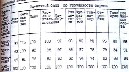 Таблица 10. Оценочная шкала под техническими сортами винограда