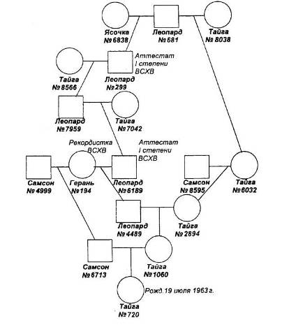 Рис. 2. Схема родословной свиноматки Тайги № 720