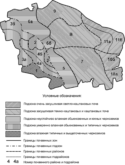 Территория рассматриваемого района входит в Манычско-Донскую сухостепную провинцию. Произрастание как в прошлом, так и в современную эпоху естественной растительности бедного видового состава и невысокой продуктивности в сочетании с жарким засушливым климатом с неустойчивыми малоснежными зимами обусловило формирование здесь почв по каштановому типу почвообразования: незначительное накопление органического вещества с проникновением его на небольшую глубину, непромывной тип водного режима со слабовыраженными процессами выщелачивания карбонатов и легкорастворимых солей, слабая микробиологическая деятельность (Антонова и Варварская, 2005).