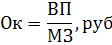 Где Ок – окупаемость, ВП – валовая продукция, МЗ – материальные затраты.