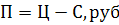 Где, П – прибыль, Ц – цена реализации, С – себестоимость
