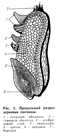 Зерновка пшеницы состоит из трех основных частей: зародыша, эндосперма и оболочек. На рис. 2 показано строение зерновки пшеницы.