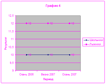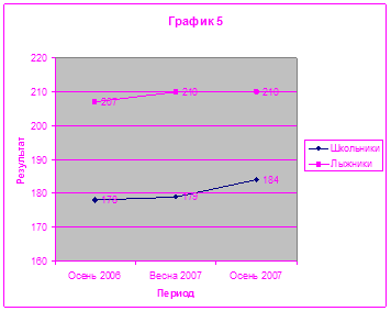 На графике 5 прослеживаются данные изменения результатов, как у лыжников, так и у школьников.