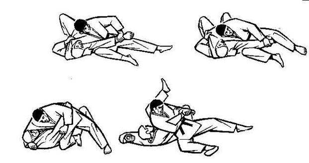 Рис 6 Кансэтсу вадза на этот раз представлена перегибанием локтя через бедро - Кеса Гарами и Ёко Хидза Гатамэ - перегибом локтя через колено.