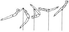 Гимнастические упражнения, выполняемые дзюдоистами 17 лет и старше, должны быть разнообразными. Необходимо повышать количество и качество подтягиваний на перекладине, отжиманий на брусьях, подниманий ног до хвата руками на гимнастической стенке. Необходимо увеличивать количество упражнений комплексного воздействия на снарядах: подъем переворотом в упор (выполняемый разными способами). Юноши 17-летнего возраста и старше, имеющие достаточную физическую подготовленность, могут освоить технику подъема разгибом на перекладине (рис. 1).
