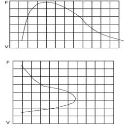 Рис. 4. График зависимости: «сила – скорость» при воздействии на растягивающийся предмет, закрепленный к неподвижной опоре кроме, высказанных замечаний по поводу целесообразности использования тренажеров на пружинной или резиновой основе, существует еще одна проблема.