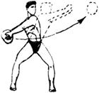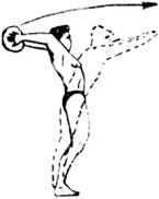 Рис. 10. Метание набивного мяча двумя руками сбоку
