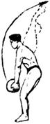 Рис. 6. Метание набивного мяча двумя руками из-за головы вперед