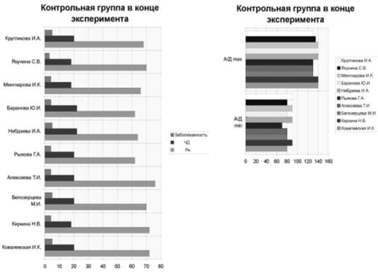 Таблица 9 Объективная оценка состояния здоровья контрольная группа в конце эксперимента