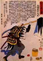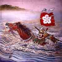 Форсирование водных рубежей самураями очень часто служило сюжетом произведений художников и ремесленников феодальной Японии. На гравюрах часто изображались воины, переплывающие реки или озёра верхом на коне или рядом с ним, имеющие при себе лук и стрелы, меч, а иногда и знамя.