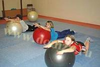 Одна из лечебно-профилактических программ для детей и взрослых, которую предлагает Лаборатория Реабилитации - это гимнастика, развивающая баланс и улучшающая координацию движений. Она представляет из себя комплекс движений с элементами иппотерапии. В данном случае мяч служит тренажером, заменяющим лошадку. При выполнении определенных движений от него исходят низкочастотные колебания, такие же, как при лечебной верховой езде. Воздействуя на глубокие мышечно-связочные структуры, они дают прекрасный терапевтический эффект.