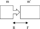 Озвучивает физик: в месте касания (контакта) одного тела с другим проявится реакция связи R (противодействие) на тело с массой m и действие F (сила) на второе тело с массой m',