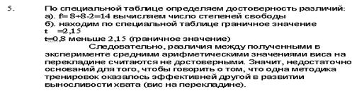 Для выявления эффективности той или иной тренировочной программы был использован способ определения достоверности различий по t-критерию Стьюдента