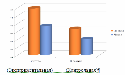 - Силовая выносливость правой руки контрольная группа с 12,1 до 11,1 (-1 сек.) экспериментальная группа с 13,1 до 12,5 (-0,6 сек.)