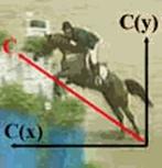 Теперь более подробно рассмотрим механику прыжка.При прыжке лошадь совершает движение подобно брошенному под углом телу (см. рис. 2). Ее начальная скорость С, в момент отталкивания состоит из горизонтальной составляющей С(x), т.е. скорости с которой лошадь двигается перед прыжком, и вертикальной составляющей С(y) в момент отталкивания, которая в каждую секунду уменьшается на величину свободного падения g=9,8м/сек. Перемещение происходит по параболе, а сопротивлением воздуха можно принебречь. Горизонтальная скорость C(x) = C . cos a (1) Вертикальная составляющая C(y) = C . sin a - gt (2) Высота прыжка равна: |