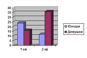 Как показано на гистограмме 1, юноши-спортсмены более ориентированы на успех в спорте, чем девушки. Это обнаруживается по многим признакам. Они более озабочены завоеванием авторитета среди соперников. У мужчин стремление к мотивации достижения проявляется у 24%, у девушек этот показатель: 16%. Касательно мотивации избегания неудач: юноши-12%, девушки-36%. В результате исследований можно сделать вывод, что для спортсменов-мужчин более характерна ориентация на достижение победы, тогда как женщины-спортсменки в большей степени стремятся к улучшению собственных результатов.
