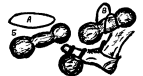 15. Способ крепления отягощения – гантели к стопе. На кольцо из крепкой веревки (А) укладывается гантель 1–3 кг (Б), в свободные отверстия над гантелью (В) плотно просовывается передняя частьстопы. При использовании связки из 2–3 новых шнурков для кроссовок, они завязываются на уровне ближних к подъему стопы концов.