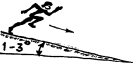 49. Ходьба по наклонной дорожке вверх-вниз высоко на носках. То же ходьба змейкой вверх-вниз по наклонной части виража.