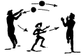 54. В легком беге перебрасывание одного-двух мячей в парах-тройках.