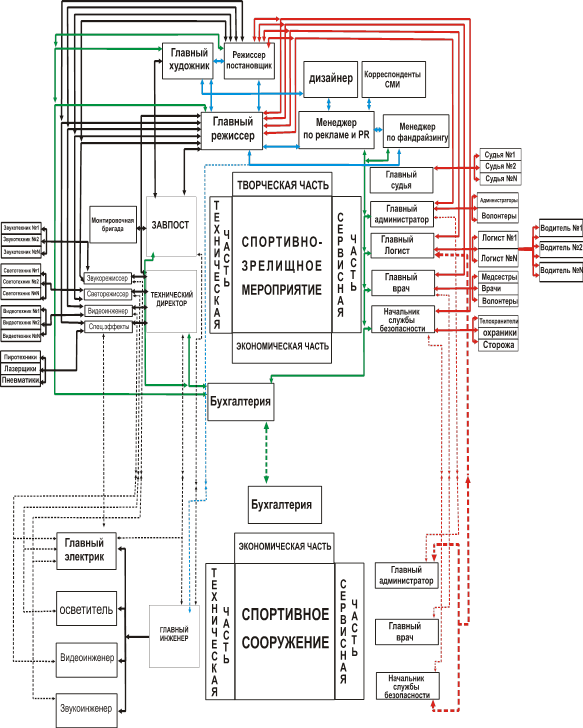 Рис.4. Система внешних и внутренних связей при подготовке спортивно-художественного праздника на спортивном сооружении