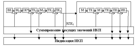 Примечание: ВК - входной контроль; ОК* - оперативный контроль (постоянно); ТК - текущий контроль; ПК - промежуточный контроль; ИК - итоговый контроль; М - модуль; Rвк, Rок, Rтк, Rпк, Rик - соответственно рейтинг по результатам входного, оперативного, текущего, промежуточного и итогового контроля. ИКП - индивидуальный кумулятивный показатель.