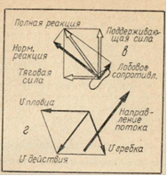 Динамическое взаимодействие при относительном движении пловца и воды обусловлено разностью давлений, а также трением между телом и пограничными слоями воды.